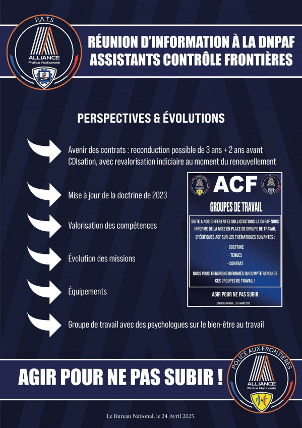 Réunion d’information à la DNPAF - Assistants Contrôle Frontières – Perspectives & Évolutions