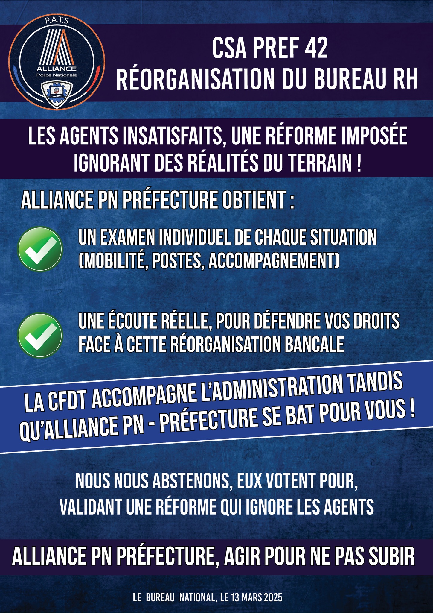 đŽ La CFDT accompagne lâadministration tandis quâAlliance PN - PrĂ©fecture se bat pour vous !